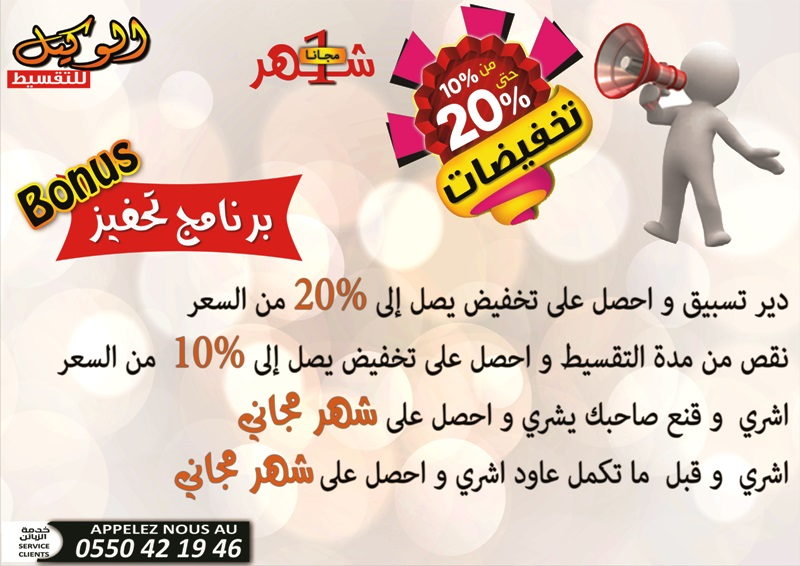• صكان بريديان موقعان و غير مشطوبين (يتم استرجاعهما عند الإنتهاء من التقسيط).